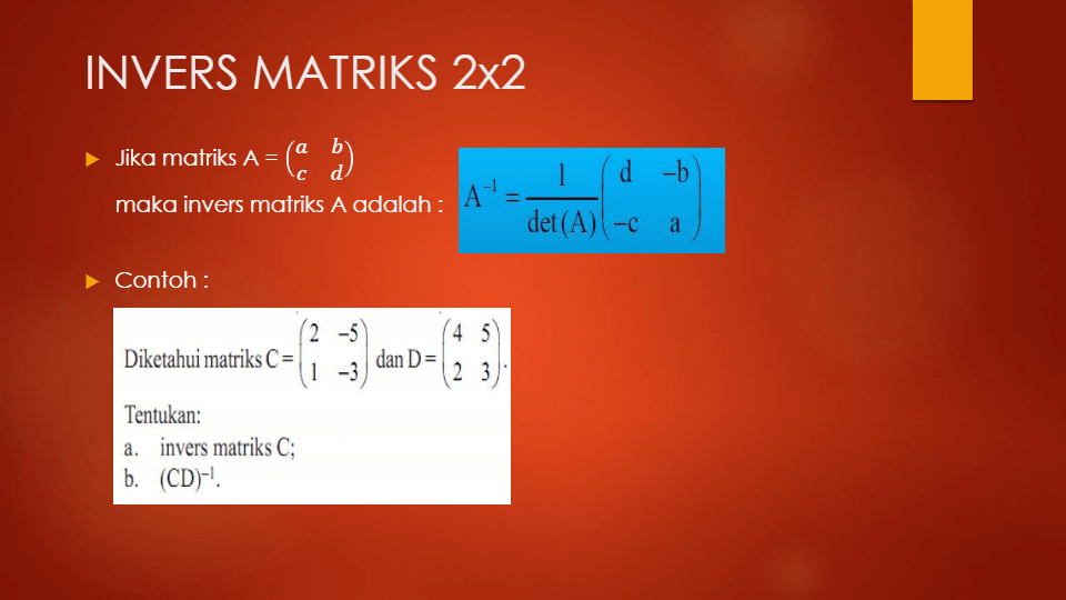 Invers Matriks 2X2 / Matriks A 2 Menentukan Determinan Matriks 2x2 3 Menentukan Invers Dari Matriks 2x2 4 Ordo Matriks B Adalah B 2 X 3 A 1 3 4 A 22 6 B Jenis Jenis Matriks 1 : Kalkulator matriks invers 2x2 untuk menemukan nilai matriks terbalik dari nilai input matriks 2x2 yang diberikan.